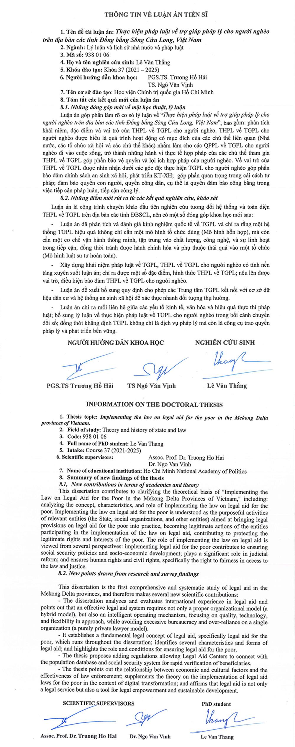 Nghiên cứu sinh Lê Văn Thắng tóm tắt những kết luận mới của luận án