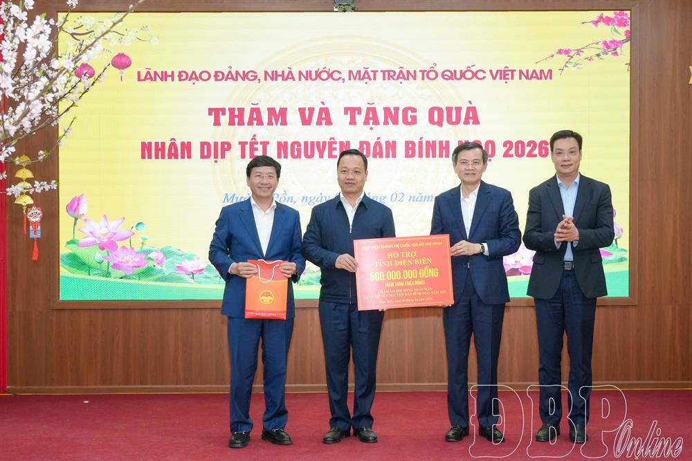 Chiều 8/2, đồng chí Đoàn Minh Huấn, Ủy viên Bộ Chính trị, Bí thư Đảng ủy, Giám đốc Học viện Chính trị quốc gia Hồ Chí Minh dẫn đầu đoàn công tác Trung ương đã thăm, chúc Tết hộ nghèo, công nhân lao động và cán bộ, chiến sĩ các lực lượng vũ trang tại Điện Biên.