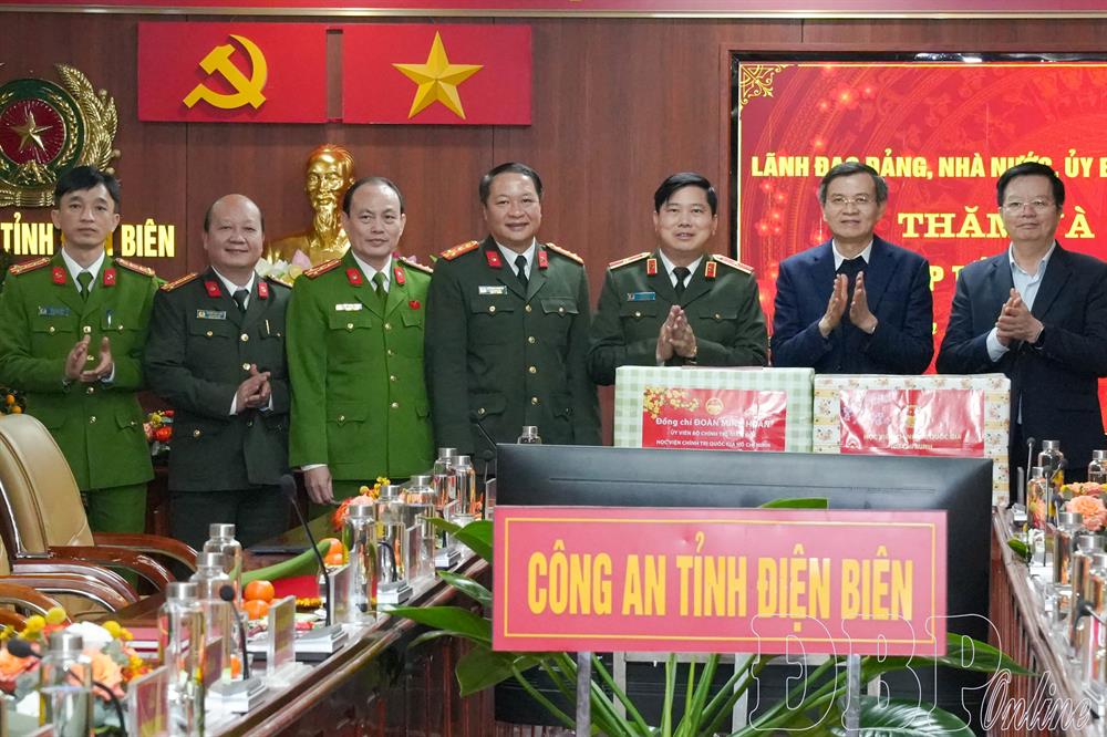 Thăm, chúc Tết cán bộ, chiến sĩ Công an tỉnh, Ban Chỉ huy Bộ đội Biên phòng tỉnh Điện Biên và cán bộ, chiến sĩ Đồn biên phòng Mường Mươn, Giám đốc Học viện Chính trị quốc gia Đoàn Minh Huấn chúc mừng kết quả công tác mà các đơn vị đạt được trong năm 2025, đã góp phần quan trọng bảo đảm an ninh, trật tự địa bàn, giữ vững an toàn đường biên mốc giới.