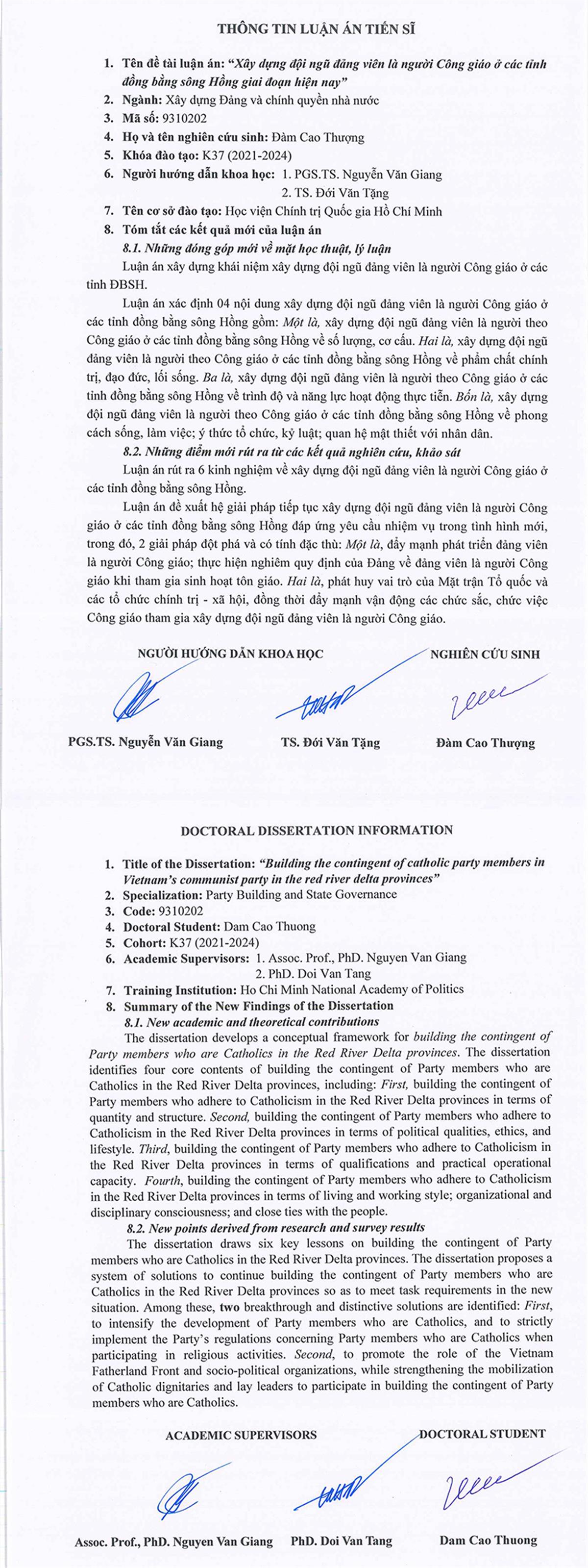 Nghiên cứu sinh Đàm Cao Thượng tóm tắt những kết luận mới của luận án