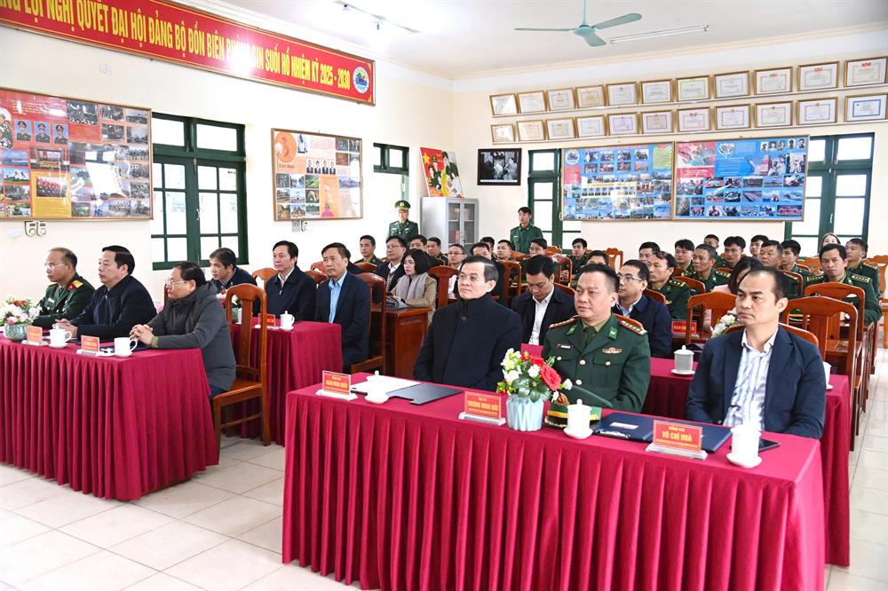 Đồng chí Đoàn Minh Huấn và Đoàn công tác chúc Tết cán bộ, chiến sĩ Đồn Biên phòng Sin Suối Hồ