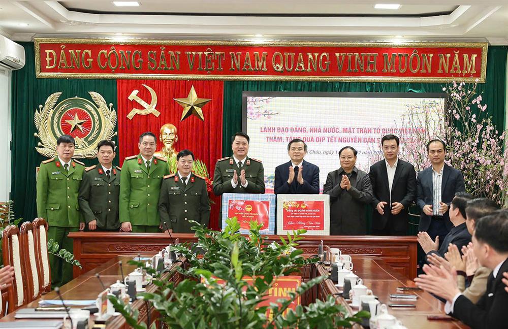 Đồng chí Đoàn Minh Huấn và Đoàn công tác tặng quà Tết cho cán bộ, chiến sĩ Công an tỉnh Lai Châu