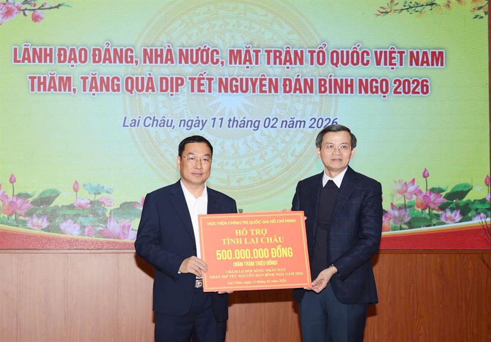 Sáng 11/2, Đoàn công tác của lãnh đạo Đảng, Nhà nước do PGS,TS Đoàn Minh Huấn, Ủy viên Bộ Chính trị, Giám đốc Học viện Chính trị quốc gia Hồ Chí Minh làm Trưởng đoàn đã đến thăm, chúc Tết cán bộ, chiến sĩ lực lượng vũ trang, tặng quà cho hộ nghèo, hộ cận nghèo và người lao động có hoàn cảnh khó khăn tại Lai Châu.