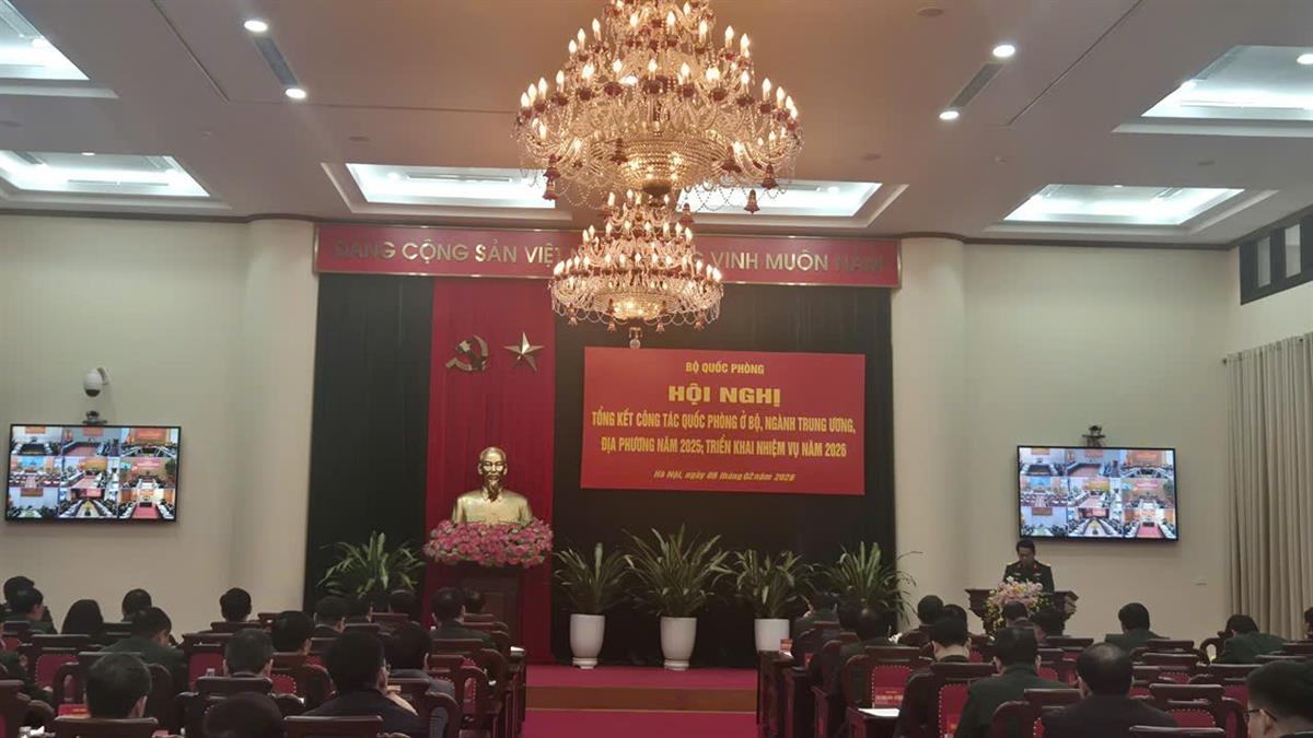 Quang cảnh Hội nghị Tổng kết công tác quân sự, quốc phòng ở Bộ, Ngành Trung ương, địa phương năm 2025 và triển khai nhiệm vụ năm 2026