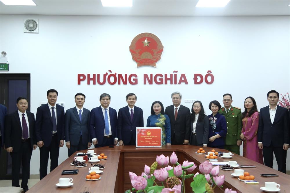 Đến thăm phường Nghĩa Đô, cùng các cán bộ, chiến sĩ, lực lượng bảo vệ và dân quân tự vệ của Học viện, lực lượng Công an phường Nghĩa Đô, Hà Nội, đồng chí Ủy viên Bộ Chính trị, Giám đốc Học viện, ghi nhận, biểu dương những kết quả các đơn vị đạt được trong năm 2025; góp phần quan trọng phát triển kinh tế - xã hội, giữ vững an ninh chính trị, trật tự an toàn trên địa bàn. Trong bối cảnh yêu cầu nhiệm vụ ngày càng cao, các lực lượng đã tích cực, chủ động tham mưu triển khai hiệu quả các biện pháp phát triển văn hóa, kinh tế - xã hội, bảo đảm an ninh chính trị, trật tự an toàn; tăng cường nắm tình hình địa bàn, phối hợp chặt chẽ với lực lượng tham gia bảo vệ an ninh, trật tự ở cơ sở, giữ vững ổn định, kỷ cương trên địa bàn.