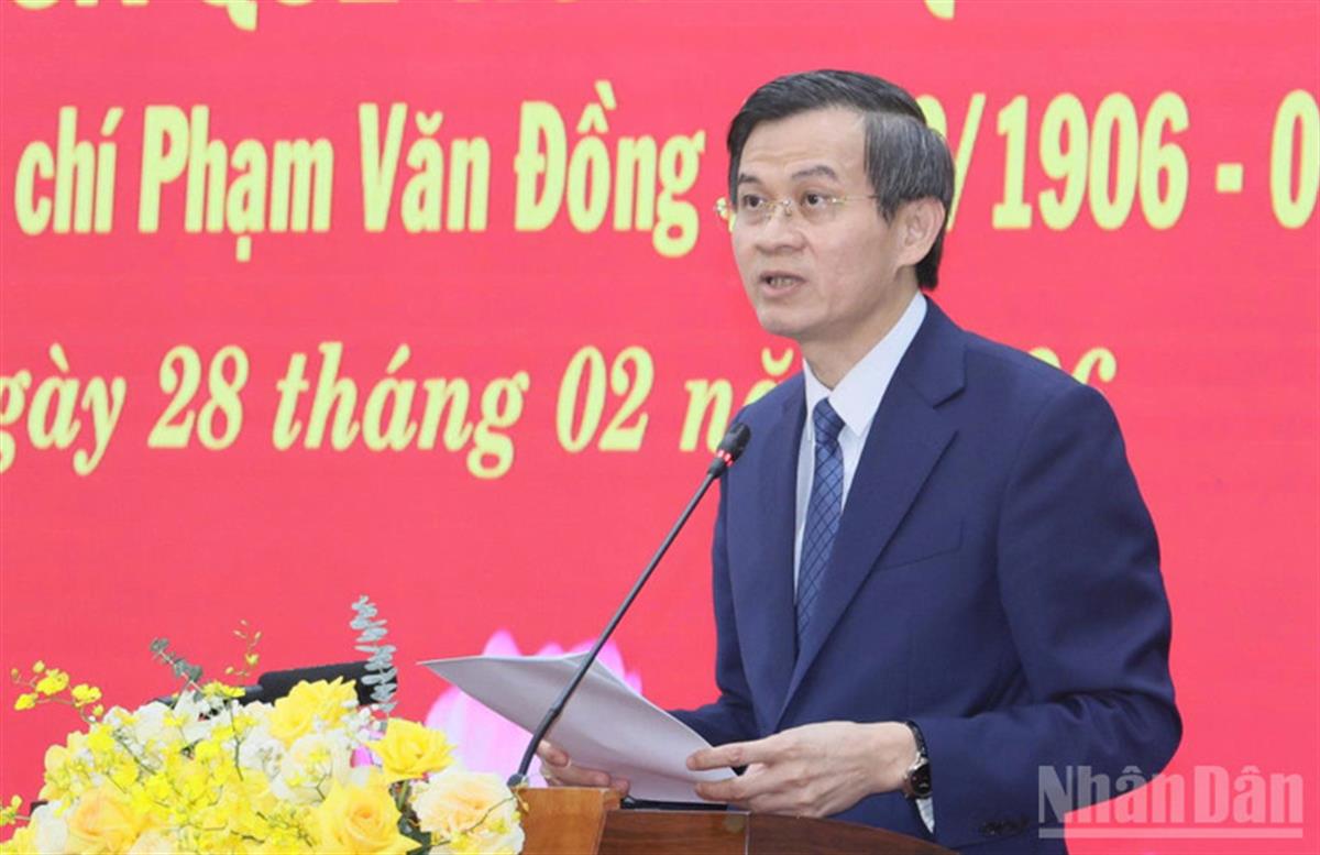 Phó Thủ tướng Chính phủ Bùi Thanh Sơn nhấn mạnh, hiện nay, toàn Đảng, toàn dân và toàn quân ta đang khẩn trương, quyết liệt triển khai thực hiện thắng lợi Nghị quyết Đại hội đại biểu toàn quốc lần thứ XIV của Đảng và Nghị quyết Đại hội Đảng bộ các cấp, góp phần đưa đất nước phát triển mạnh mẽ trong kỷ nguyên mới. Hội thảo khoa học kỷ niệm 120 năm Ngày sinh đồng chí Phạm Văn Đồng vừa là hoạt động thiết thực tưởng nhớ, trí ân cuộc đời, sự nghiệp cách mạng cao đẹp của đồng chí Phạm Văn Đồng, vừa góp phần tuyên truyền, giáo dục truyền thống cách mạng vẻ vang của Đảng và dân tộc cho các thế hệ cán bộ, đảng viên, các tầng lớp nhân dân, đặc biệt là thế hệ trẻ.