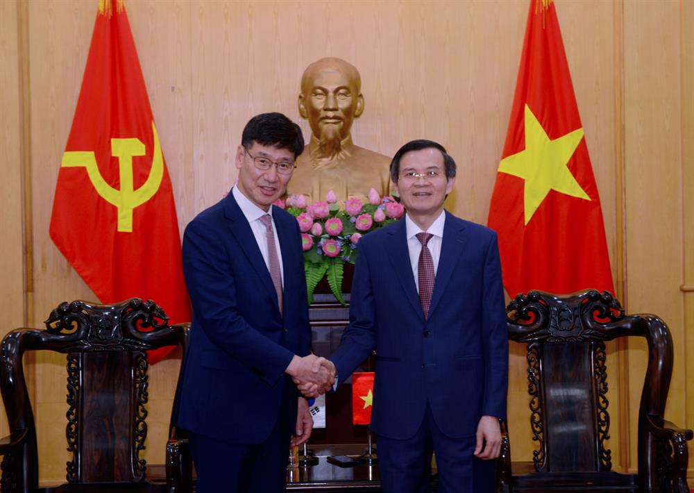 Chiều ngày 4/3/2026, tại Hà Nội, PGS,TS Đoàn Minh Huấn, Uỷ viên Bộ Chính trị, Giám đốc Học viện Chính trị quốc gia Hồ Chí Minh chủ trì buổi tiếp Tổng Giám đốc Samsung Việt Nam Na Ki Hong.