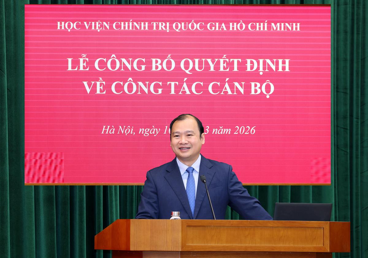 Sáng ngày 10/3/2026, tại Hà Nội, Học viện Chính trị quốc gia Hồ Chí Minh tổ chức Lễ công bố quyết định bổ nhiệm chức danh Phó Tổng Biên tập Tạp chí Nghiên cứu Văn hóa và Phát triển (Tạp chí) thuộc Viện Văn hóa và Phát triển. PGS,TS Lê Hải Bình, Ủy viên Trung ương Đảng, Phó Giám đốc thường trực Học viện Chính trị quốc gia Hồ Chí Minh dự và chủ trì buổi Lễ.