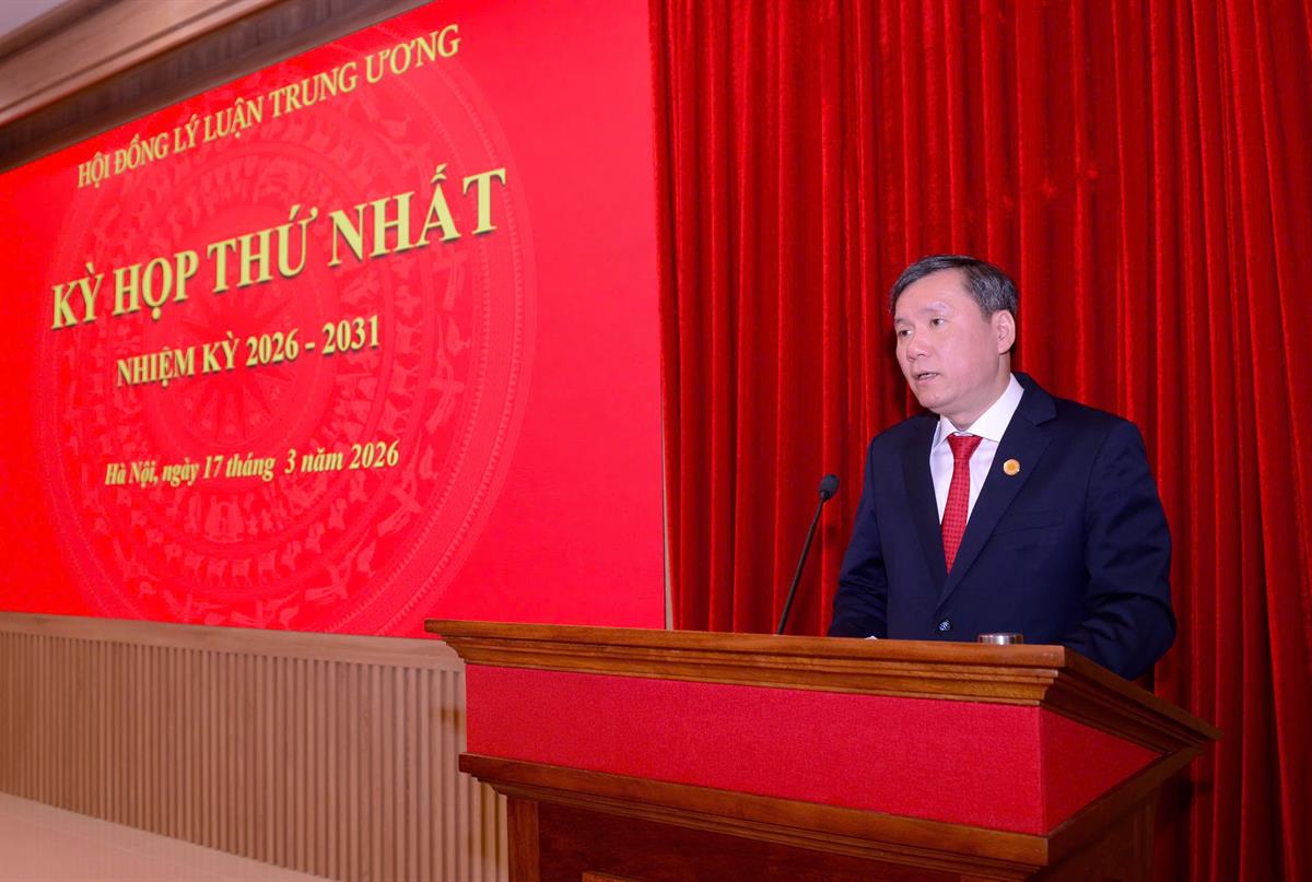 Sáng 17/3/2026, tại Học viện Chính trị quốc gia Hồ Chí Minh, Hội đồng Lý luận Trung ương tổ chức kỳ họp thứ nhất nhiệm kỳ 2026-2031. PGS,TS Đoàn Minh Huấn, Uỷ viên Bộ Chính trị, Giám đốc Học viện Chính trị quốc gia Hồ Chí Minh, Phó Chủ tịch thường trực Hội đồng Lý luận Trung ương dự và chủ trì kỳ họp.