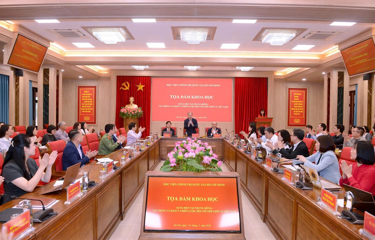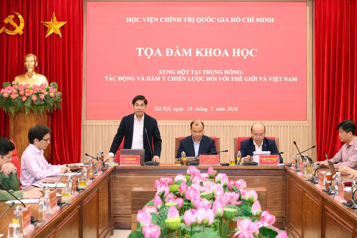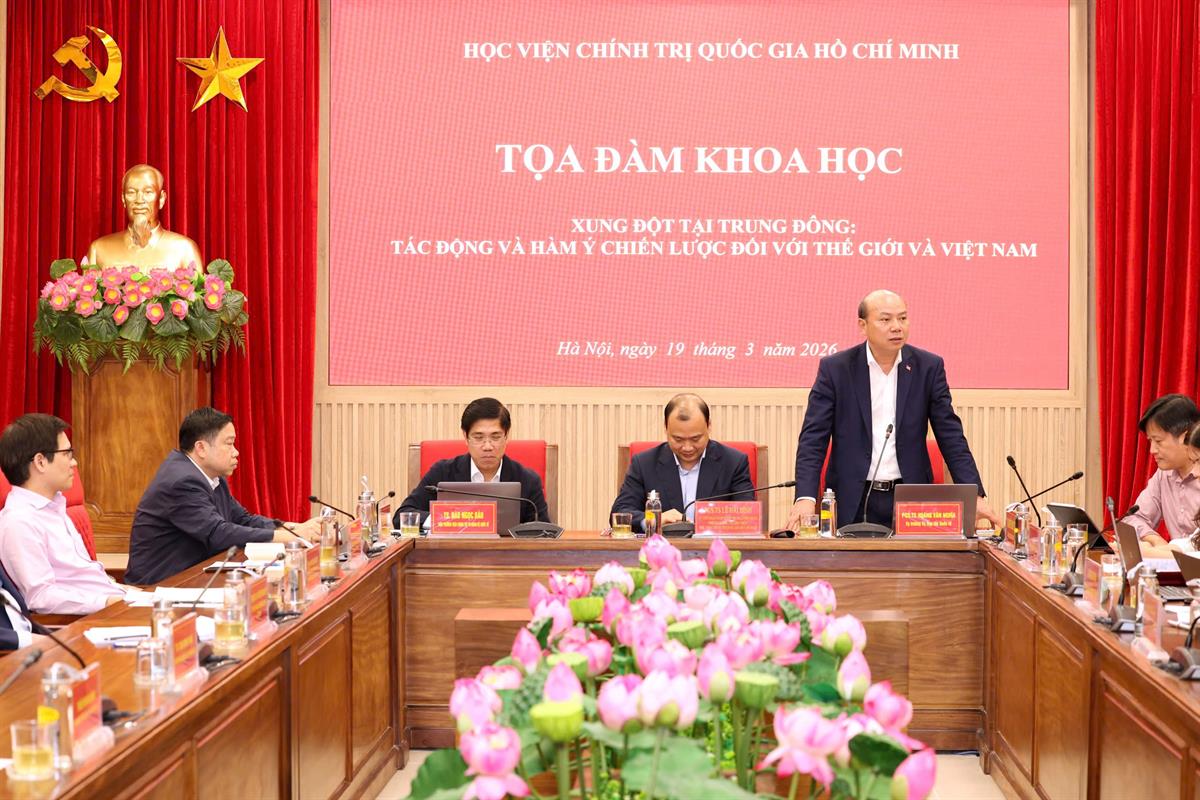 Chiều ngày 19/3/2026, tại Hà Nội, Học viện Chính trị quốc gia Hồ Chí Minh tổ chức toạ đàm khoa học “Xung đột tại Trung Đông: Tác động và hàm ý chiến lược đối với thế giới và Việt Nam”. PGS,TS Lê Hải Bình, Uỷ viên Trung ương Đảng, Phó Giám đốc thường trực Học viện Chính trị quốc gia Hồ Chí Minh dự và chủ trì Toạ đàm.