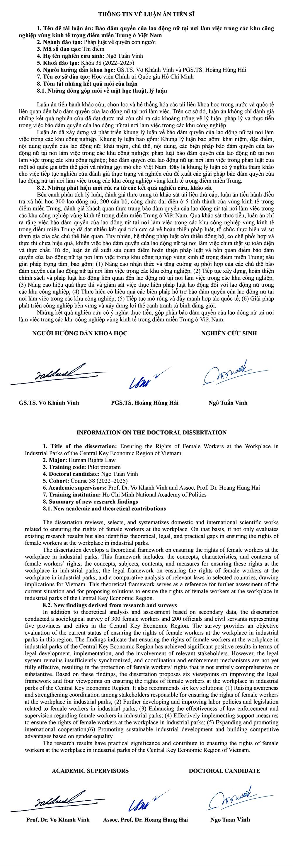 Nghiên cứu sinh Ngô Tuấn Vinh tóm tắt những kết luận mới của luận án