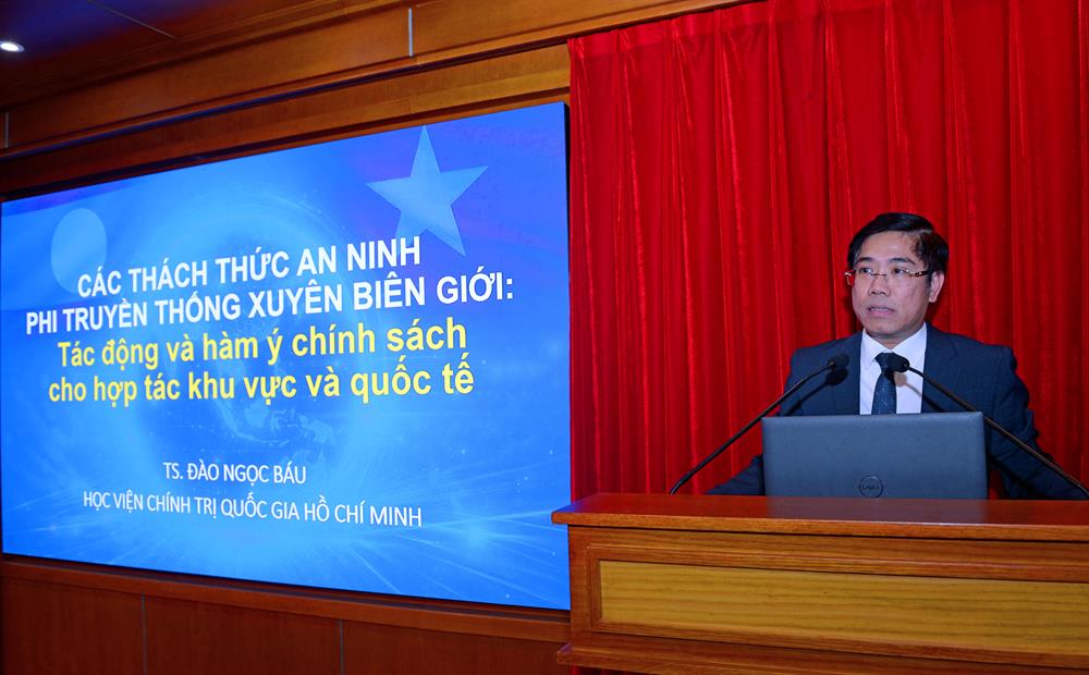 Báo cáo tại phiên chuyên đề 2, TS Đào Ngọc Báu chỉ rõ, bên cạnh những cơ hội phát triển, các quốc gia trong khu vực, trong đó có Lào, đang phải đối mặt với nhiều rủi ro mang tính phi truyền thống như biến đổi khí hậu, dịch bệnh, an ninh năng lượng, an ninh nguồn nước, tội phạm xuyên quốc gia và các thách thức từ không gian mạng. Những vấn đề này có tính chất liên ngành, liên quốc gia, đòi hỏi cách tiếp cận tổng thể, không thể giải quyết đơn lẻ trong phạm vi từng quốc gia bởi đặc điểm nổi bật của các thách thức này là tính “xuyên biên giới” và khả năng lan tỏa nhanh, khiến các công cụ quản trị truyền thống dựa trên phạm vi lãnh thổ quốc gia bộc lộ nhiều hạn chế. Qua đó, đề xuất một số định hướng quan trọng trong nâng cao năng lực quản trị quốc gia và nhấn mạnh vai trò thiết yếu của hợp tác quốc tế trong xử lý các vấn đề an ninh phi truyền thống. Đối với Việt Nam và Lào, việc tiếp tục củng cố quan hệ hợp tác toàn diện, đặc biệt trong các lĩnh vực liên quan đến quản trị rủi ro, an ninh phi truyền thống và phát triển bền vững, sẽ góp phần nâng cao năng lực ứng phó chung, đồng thời bảo đảm ổn định chính trị - xã hội và thúc đẩy phát triển lâu dài.