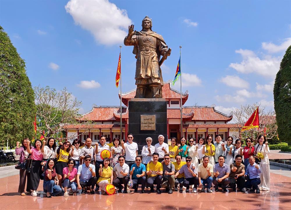 Đoàn chụp ảnh lưu niệm bên tượng đài Hoàng đế Quang Trung