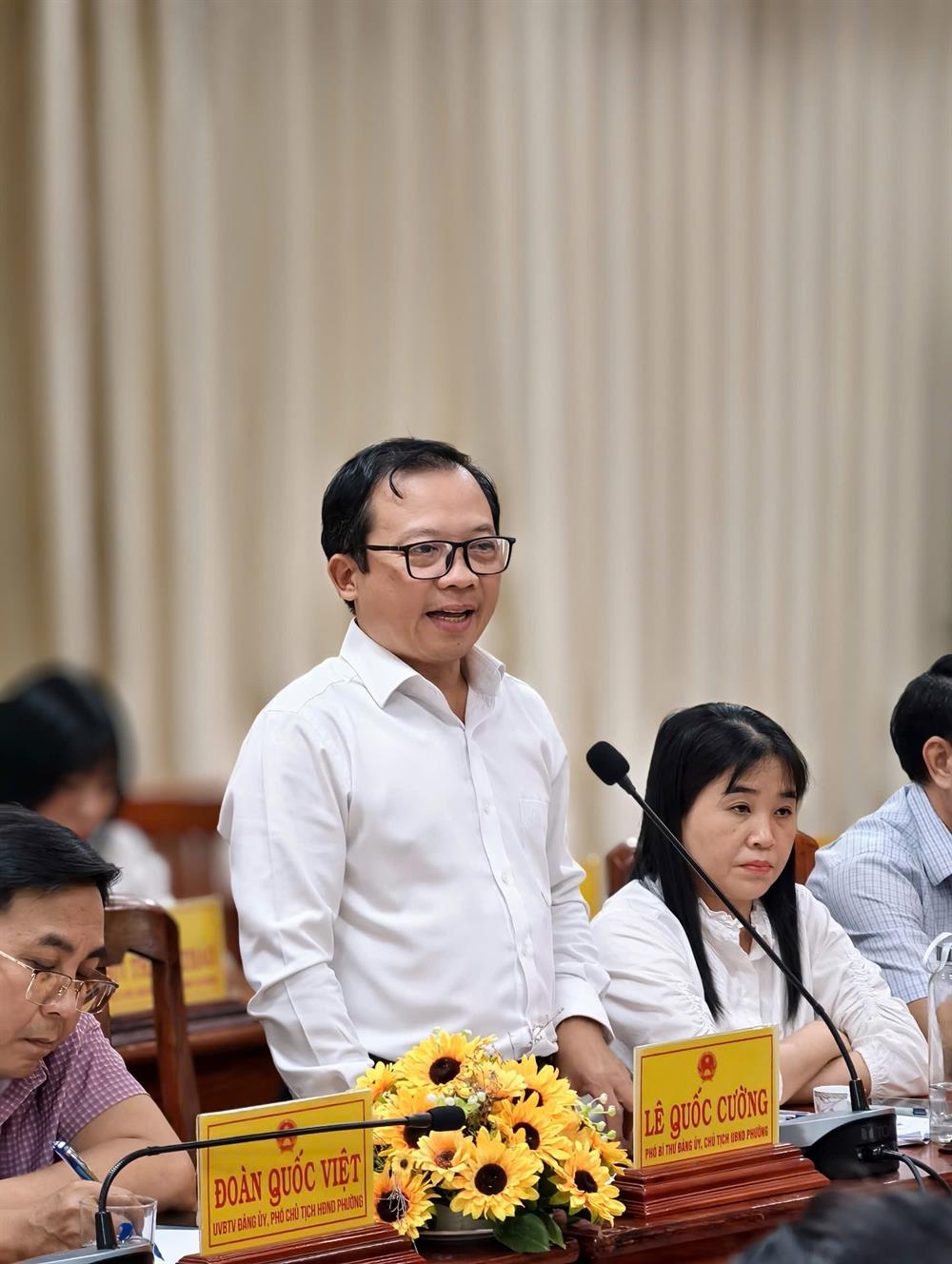 Đồng chí Lê Quốc Cường, Phó bí thư Đảng ủy, Chủ tịch UBND phường Bình Định thông tin về phát triển kinh tế - xã hội và công tác quản lý, điều hành ở cơ sở