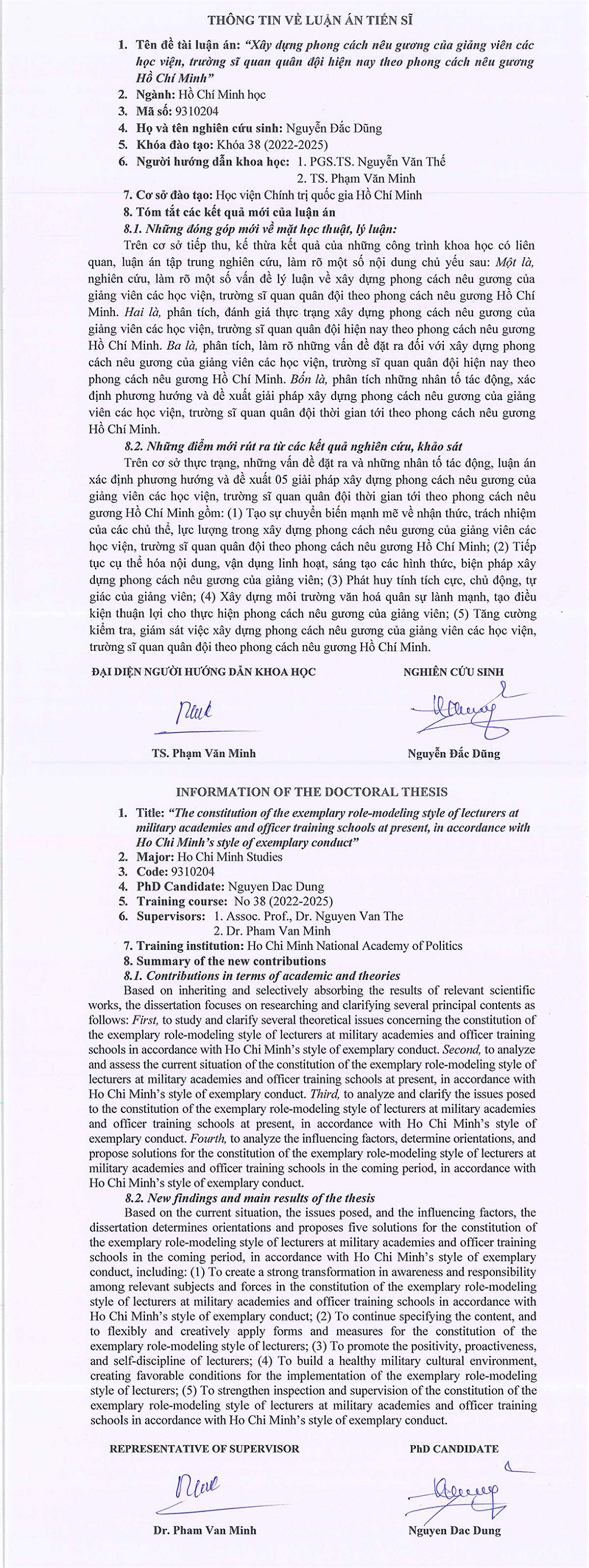 Luận án và tóm tắt luận án của Nghiên cứu sinh Võ Văn Chỉ sau bảo vệ cấp Học viện