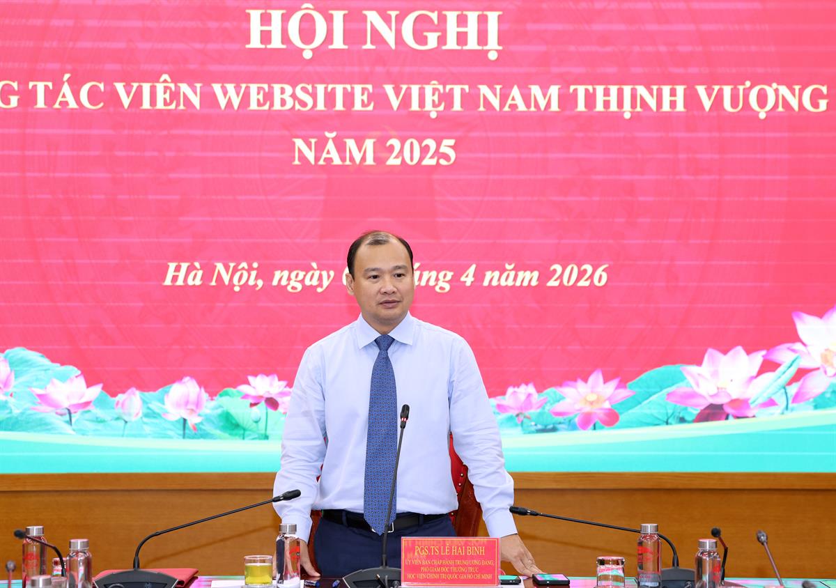 Sáng ngày 01/04/2026, Học viện Chính trị quốc gia Hồ Chí Minh tổ chức Hội nghị cộng tác viên website Việt Nam Thịnh vượng năm 2025. PGS,TS Lê Hải Bình, Ủy viên Trung ương Đảng, Phó Giám đốc thường trực Học viện dự và chỉ đạo hội nghị.