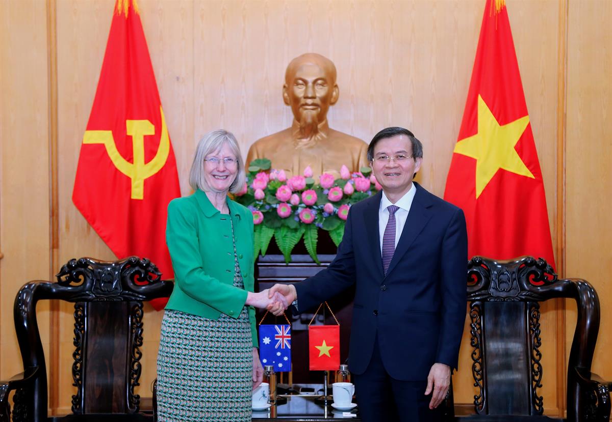 Đồng chí Uỷ viên Bộ Chính trị, Giám đốc Học viện tiếp Đại sứ đặc mệnh toàn quyền Australia tại Việt Nam