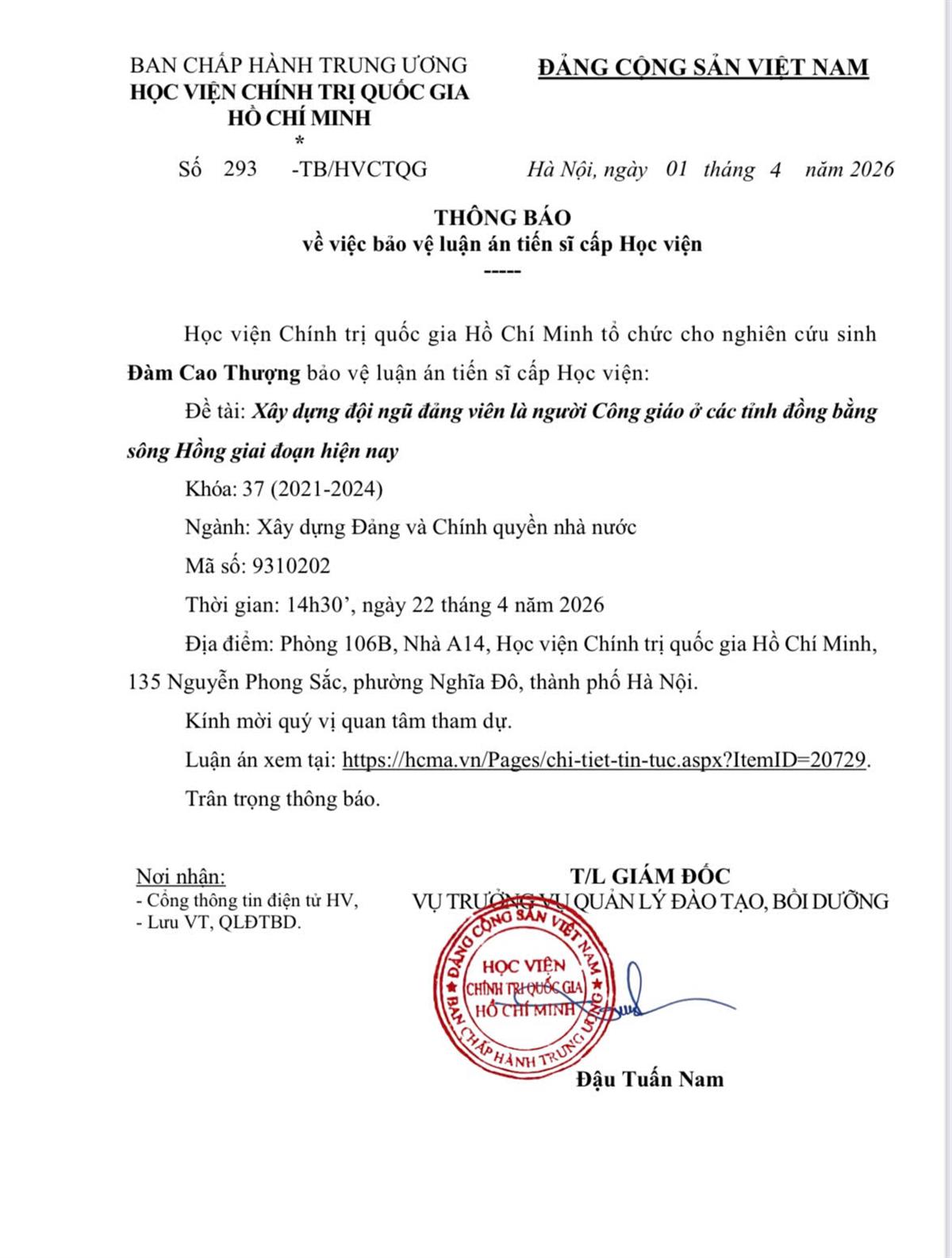 Sáng ngày 01/04/2026, Học viện Chính trị quốc gia Hồ Chí Minh tổ chức Hội nghị cộng tác viên website Việt Nam Thịnh vượng năm 2025. PGS,TS Lê Hải Bình, Ủy viên Trung ương Đảng, Phó Giám đốc thường trực Học viện dự và chỉ đạo hội nghị.