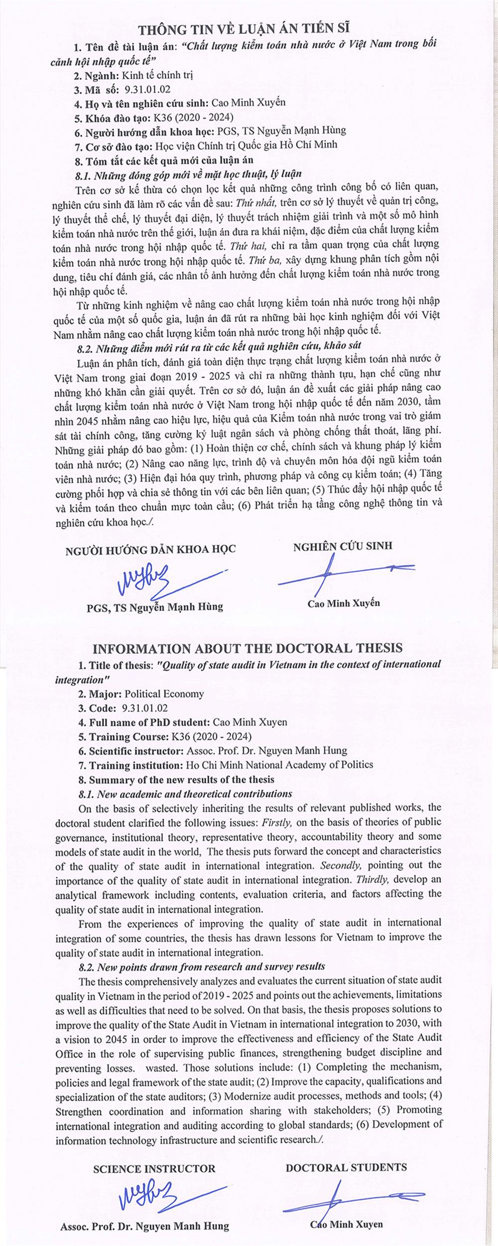 Nghiên cứu sinh Cao Minh Xuyến tóm tắt những kết luận mới của luận án