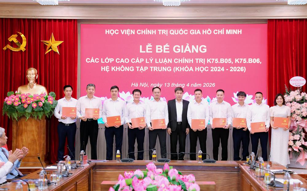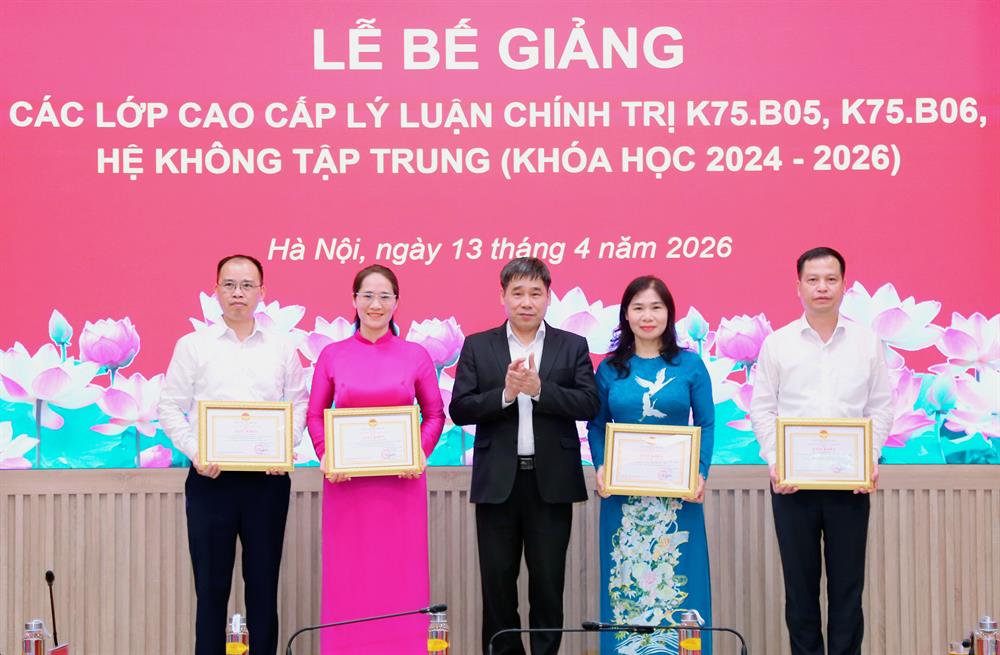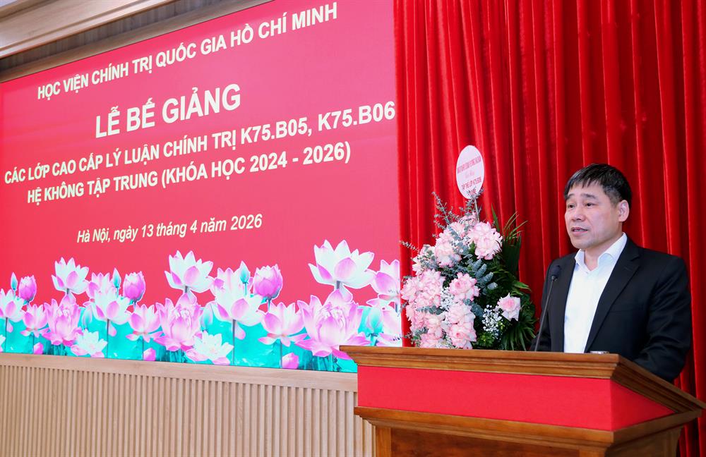 Phát biểu tại buổi lễ, TS Đậu Tuấn Nam, Vụ trưởng Vụ Quản lý đào tạo, bồi dưỡng ghi nhận và đánh giá cao tinh thần học tập nghiêm túc, ý thức trách nhiệm và sự nỗ lực vượt khó của các học viên trong suốt khóa học. Đồng chí nhấn mạnh, việc hoàn thành chương trình Cao cấp lý luận chính trị không chỉ là dấu mốc quan trọng trong quá trình rèn luyện, trưởng thành của mỗi cán bộ, mà còn là yêu cầu tất yếu trong xây dựng đội ngũ cán bộ có đủ phẩm chất, năng lực, uy tín, ngang tầm nhiệm vụ trong giai đoạn mới.