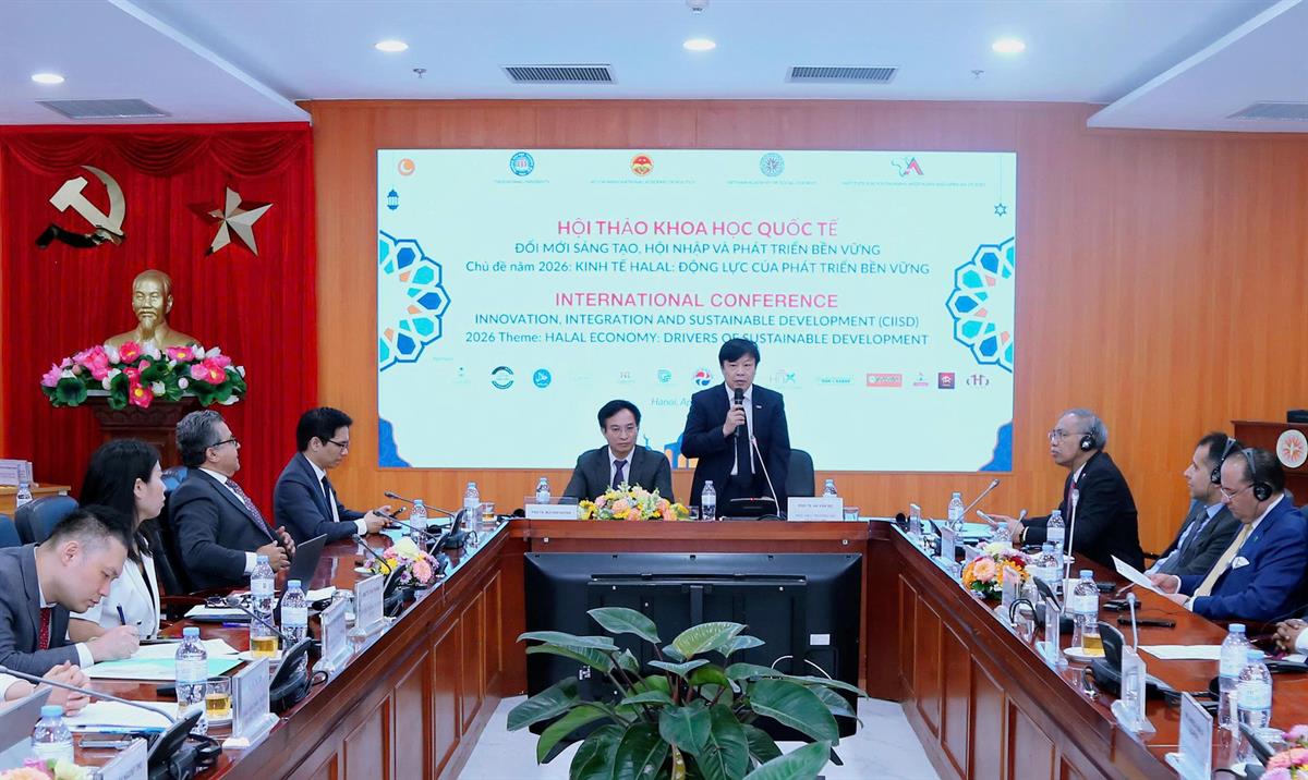 Sáng ngày 22/4/2026, tại Hà Nội, Viện Kinh tế - Xã hội và Môi trường thuộc Học viện Chính trị quốc gia Hồ Chí Minh, Viện Nghiên cứu Nam Á, Tây Á và châu Phi thuộc Viện Hàn lâm Khoa học xã hội Việt Nam, và Trường Đại học Thương mại phối hợp tổ chức hội thảo khoa học quốc tế thường niên “Đổi mới sáng tạo, hội nhập và phát triển bền vững” (CIISD) năm 2026 với chủ đề "Kinh tế Halal – Động lực của phát triển bền vững".
