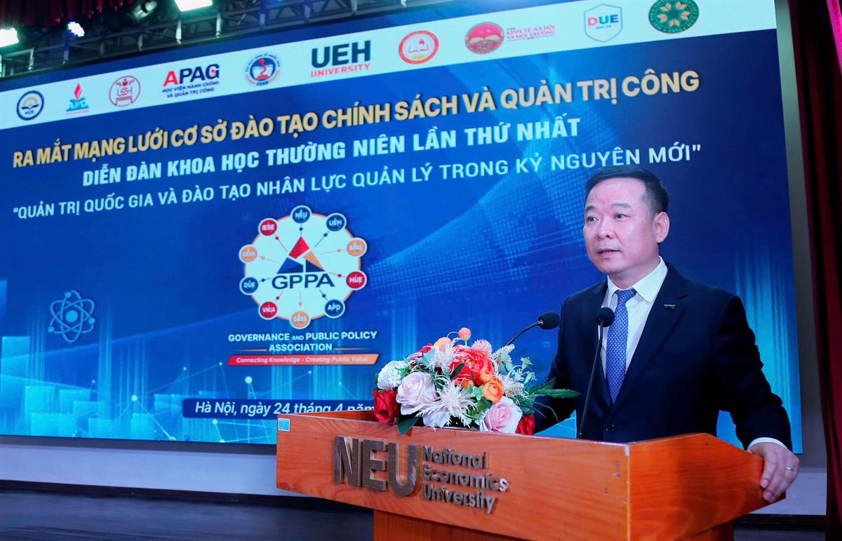 Đại diện đơn vị đăng cai tổ chức Lễ ra mắt GPPA và Diễn đàn khoa học thường niên lần thứ nhất phát biểu chào mừng tại buổi Lễ, PGS,TS Bùi Huy Nhượng, Giám đốc Đại học Kinh tế Quốc dân, Chủ tịch GPPA năm 2026 nhấn mạnh, hiện nay nhiều cơ sở đào tạo và nghiên cứu ở Việt Nam đang triển khai các chương trình đào tạo và nghiên cứu khoa học liên quan đến Quản trị công và chính sách, song về cơ bản những chương trình này đang bị phân mảnh và được thực hiện riêng theo định hướng riêng của từng cơ sở giáo dục. Vì vậy, việc thành lập và ra mắt GPPA với sự tham gia của 10 đơn vị thành viên sẽ mở ra một giai đoạn phát triển mới đối với đào tạo và nghiên cứu về Chính sách và Quản trị công, là khởi đầu cho một hành trình hợp tác thực chất hiệu quả và bền vững. Trên cơ sở tôn trọng và phát huy thế mạnh, bản sắc riêng của từng thành viên, các thành viên tham gia Mạng lưới sẽ hoạt động trên tinh thần liên kết, chia sẻ, hợp tác và cùng kiến tạo những giá trị chung vì một nền quản trị công hiện đại, hiệu quả và trách nhiệm giải trình cao.