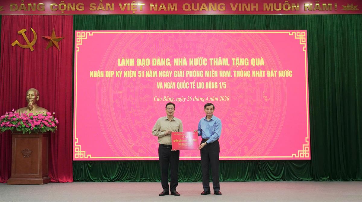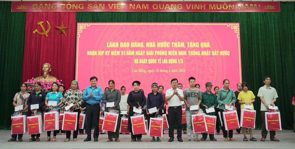 Chiều 26/4, PGS,TS Đoàn Minh Huấn, Ủy viên Bộ Chính trị, Giám đốc Học viện Chính trị quốc gia Hồ Chí Minh cùng đoàn công tác Trung ương đến thăm, tặng quà gia đình chính sách, người nghèo, công nhân, lao động có hoàn cảnh khó khăn trên địa bàn tỉnh Cao Bằng nhân kỷ niệm 51 năm Ngày giải phóng miền Nam, thống nhất đất nước (30/4/1975 - 30/4/2026) và 140 năm Ngày Quốc tế Lao động (1/5/1886 - 1/5/2026).