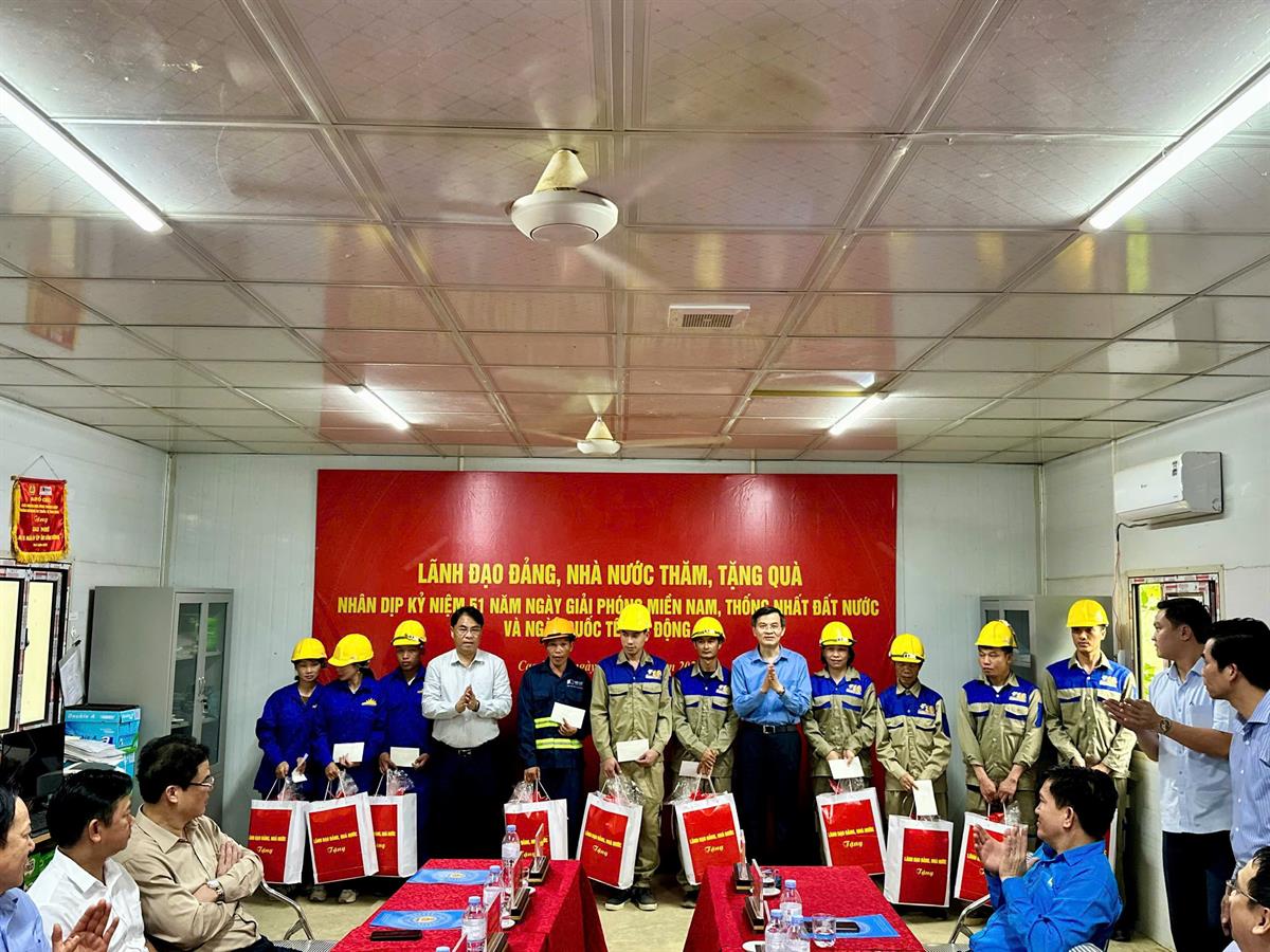 Tiếp tục chương trình công tác tại tỉnh, chiều 26/4, PGS,TS Đoàn Minh Huấn, Ủy viên Bộ Chính trị, Giám đốc Học viện Chính trị quốc gia Hồ Chí Minh và đoàn công tác Trung ương đến thăm, tặng quà công nhân công trường Dự án đầu tư xây dựng tuyến cao tốc Đồng Đăng (Lạng Sơn) - Trà Lĩnh (Cao Bằng) tại Ban Chỉ huy số 5, Tập đoàn Đầu tư xây dựng 568, xóm Lũng Luông, xã Hạnh Phúc.