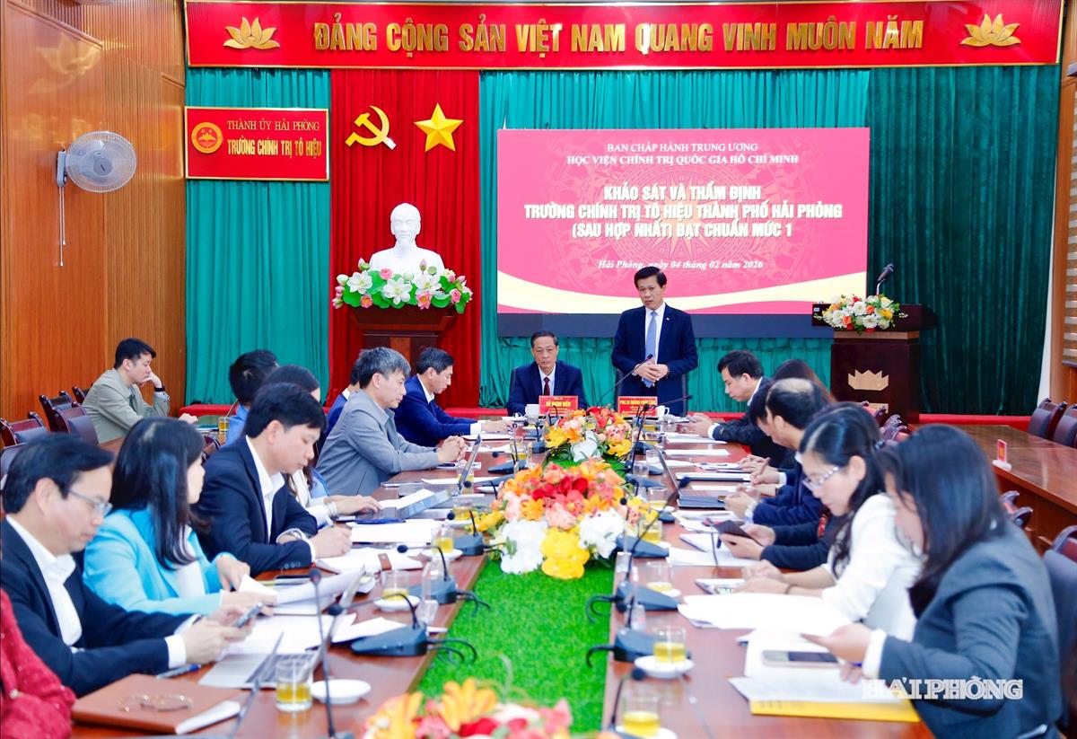 Sáng 4/2, đồng chí Đỗ Mạnh Hiến, Phó Bí thư Thường trực Thành ủy Hải Phòng và PGS,TS Hoàng Phúc Lâm, Phó Giám đốc Học viện Chính trị quốc gia Hồ Chí Minh chủ trì Hội nghị khảo sát và thẩm định, công nhận Trường Chính trị Tô Hiệu đạt chuẩn mức 1.