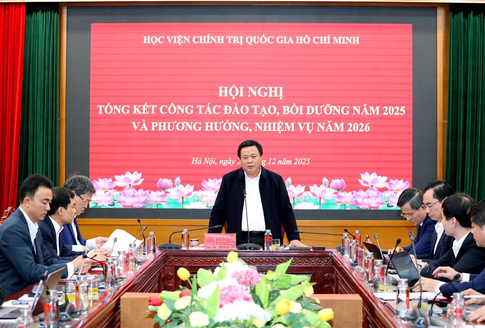 Ngày 26/12/2025, tại Hà Nội, Học viện Chính trị quốc gia Hồ Chí Minh tổ chức Hội nghị Tổng kết công tác đào tạo, bồi dưỡng năm 2025, phương hướng, nhiệm vụ năm 2026. GS,TS Nguyễn Xuân Thắng, Ủy viên Bộ Chính trị, Giám đốc Học viện, Chủ tịch Hội đồng Lý luận Trung ương dự và chủ trì Hội nghị.