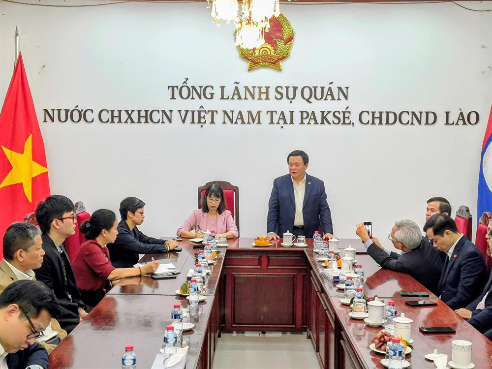 Đồng chí Ủy viên Bộ Chính trị, Giám đốc Học viện Chính trị quốc gia Hồ Chí Minh, Chủ tịch Hội đồng Lý luận Trung ương thăm và làm việc tại Tổng Lãnh sự quán Việt Nam tại Pakse, tỉnh Champasak, nước CHDCND Lào