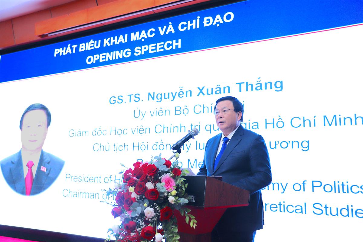GS,TS Nguyễn Xuân Thắng, Ủy viên Bộ Chính trị, Giám đốc Học viện Chính trị quốc gia Hồ Chí Minh, Chủ tịch Hội đồng lý luận Trung ương, phát biểu khai mạc và chỉ đạo Diễn đàn