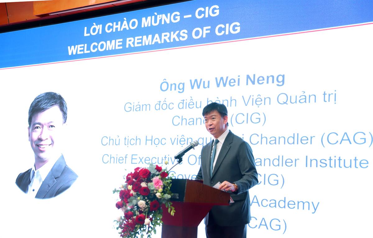 Ông Wu Wei Neng, Giám đốc Điều hành Viện Quản trị Chandler phát biểu tại Diễn đàn