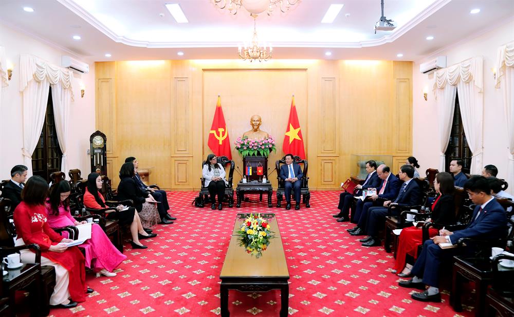Cập nhật về tình hình Venezuela, bà Tatiana Pugh Moreno cho biết, mặc dù gặp những khó khăn nhưng nền kinh tế vẫn duy trì đà tăng trưởng liên tục. Venezuela sẵn sàng đẩy mạnh hơn nữa hợp tác với Việt Nam trong trao đổi, chia sẻ kinh nghiệm về đào tạo, bồi dưỡng cán bộ lãnh đạo, quản lý các cấp; hợp tác nghiên cứu, trao đổi lý luận và các vấn đề thực tiễn mà hai bên cùng quan tâm; tăng cường giao lưu, trao đổi đoàn học giả, chuyên gia và cán bộ để góp phần thắt chặt tình đoàn kết, hữu nghị giữa hai nước; đồng thời đề xuất khả năng hợp tác đa phương với Cuba và Nicaragua trong các chương trình đào tạo.