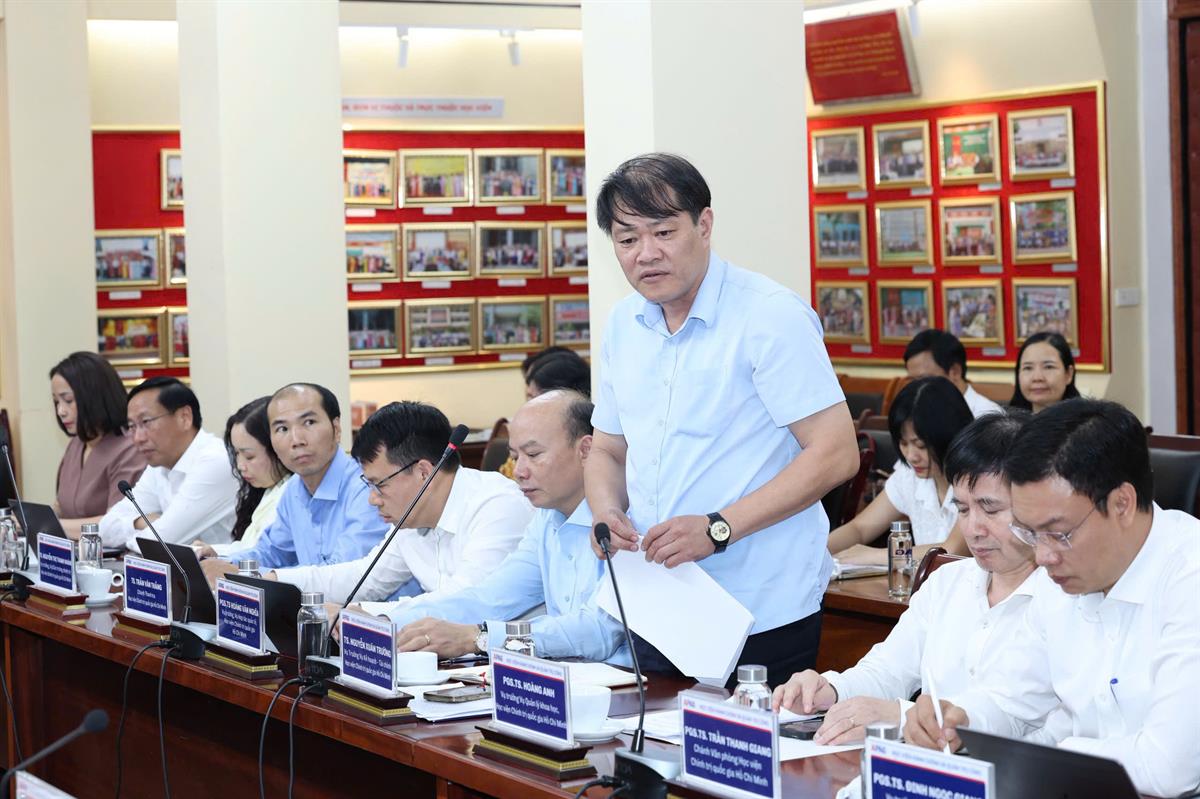 Tại buổi làm việc, các đại biểu đã trao đổi về các mặt công tác của đơn vị và đề xuất nhiều kiến nghị, tập trung vào các nhóm nội dung về định hướng, tầm nhìn trong thời gian tới; thể chế, chính sách; công tác tổ chức cán bộ; công tác văn phòng, tài chính, cơ sở vật chất; công tác các phân hiệu của Học viện Hành chính và Quản trị công tại Đà Nẵng, Đắk Lắk, và thành phố Hồ Chí Minh.