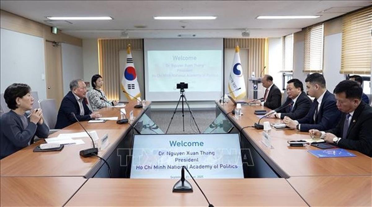 At the meeting between Nguyen Xuan Thang, Politburo member, President of the Ho Chi Minh National Academy of Politics and Lim Chae Won, President of the National Human Resources Development Institute (NHI)At NHI, the two sides reviewed more than 15 years of cooperation in training mid- and high-level Vietnamese officials under the Korea International Cooperation Agency (KOICA) programmes.