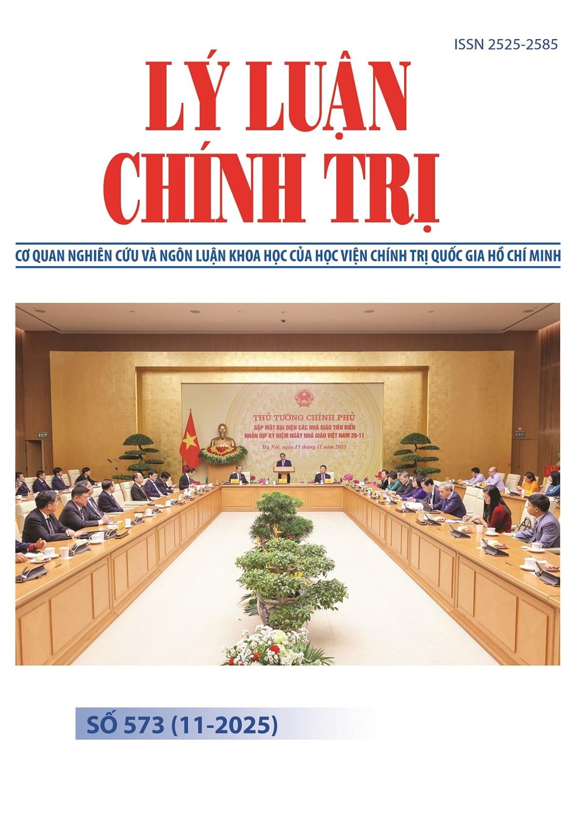 Political Theory Journal (Vietnamese Version) Issue No. 573 (Nov.2025) published articles: The Marxist - Leninist viewpoint on the role of science and technology in the development of humanity and current practice; The people's happiness - A measure of Vietnam's development in the new era; The impact of artificial intelligence on the leadership and management of the public sector; Eastern values in the perception and realization of the goals of Vietnamese socialism today; On the fundamental values in the political line of the Communist Party of Vietnam in the renovation period; The shift in labor structure associated with productivity improvement: From Karl Marx's theory to current Vietnamese practice; Applying and creatively developing Ho Chi Minh's thought on the Party building on morality in the new era; Developing the private economy and ensuring the maintenance of socialist orientation; Refuting distorted and denied arguments about science, technology and innovation in Vietnam; Implementing green public procurement to achieve green growth goals in Vietnam; Solutions to improve the effectiveness of local governance associated with decentralization and delegation of power in Vietnam; Dimensions of population and development in Vietnam and issues facing women; Building a capacity framework for key cadres at the commune level according to the current two-tier local government system in Vietnam; Special institutions on state apparatus organization for centrally governed cities in the new era of national development; ...