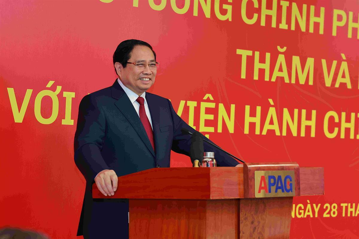 On behalf of the Party and State Leaders and General Secretary To Lam, Prime Minister Pham Minh Chinh extended his cordial regards and best New Year wishes to the leaders, faculty, staff, and employees of the Academy of Public Administration and Governance