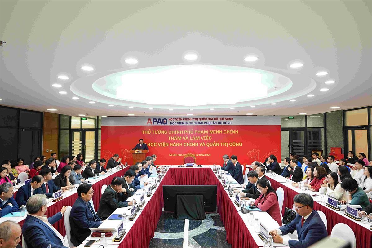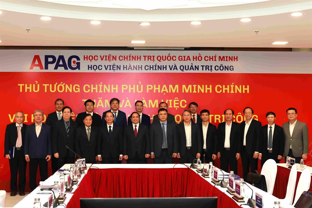 Prime Minister Pham Minh Chinh highly appreciated the achievements of the Academy of Public Administration and Governance over nearly 7 decades, especially after one year of operating under the new organizational model within the Ho Chi Minh National Academy of Politics system.