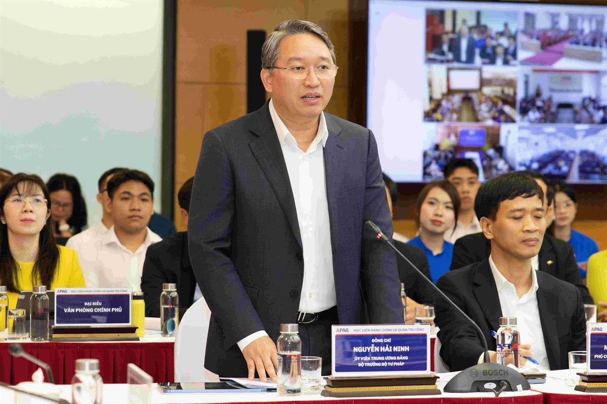 Mr. Nguyen Hai Ninh, Member of the Party Central Committee and Minister of Justice, delivered a speech