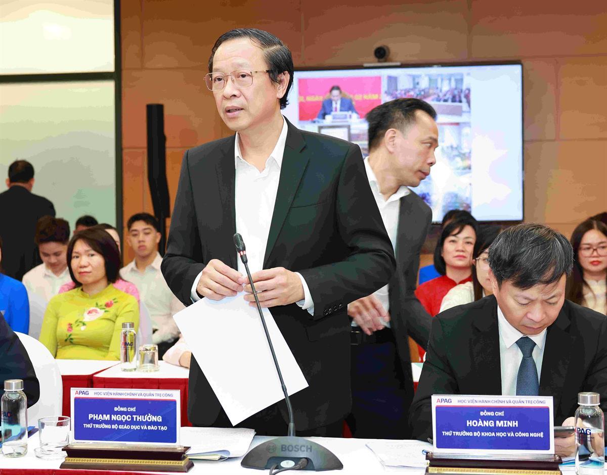 Prime Minister Pham Minh Chinh requested the Academy to be a pioneer in: (1) Institutionalizing the Resolution of the 14th National Congress and thematic resolutions on innovating national governance; (2) Innovating thinking, training according to competency standards, linked with practice and output results; (3) Innovating teaching methods, promoting research and policy consultancy; (4) Building a high-quality teaching staff, promoting identity and core values; (5) Strongly applying science and technology, developing the “Digital - Green - Smart Academy” model.