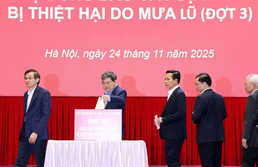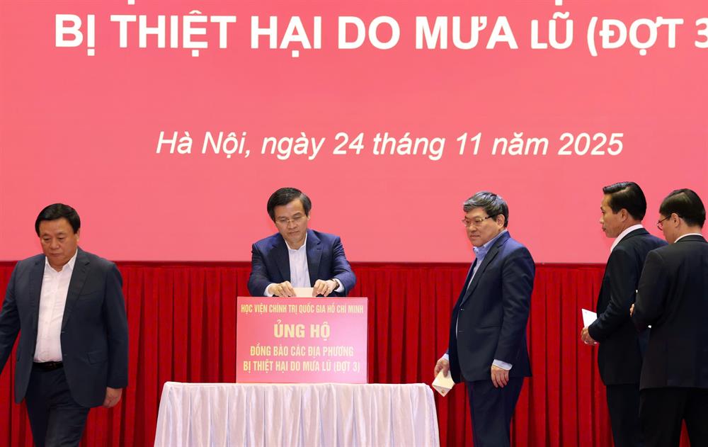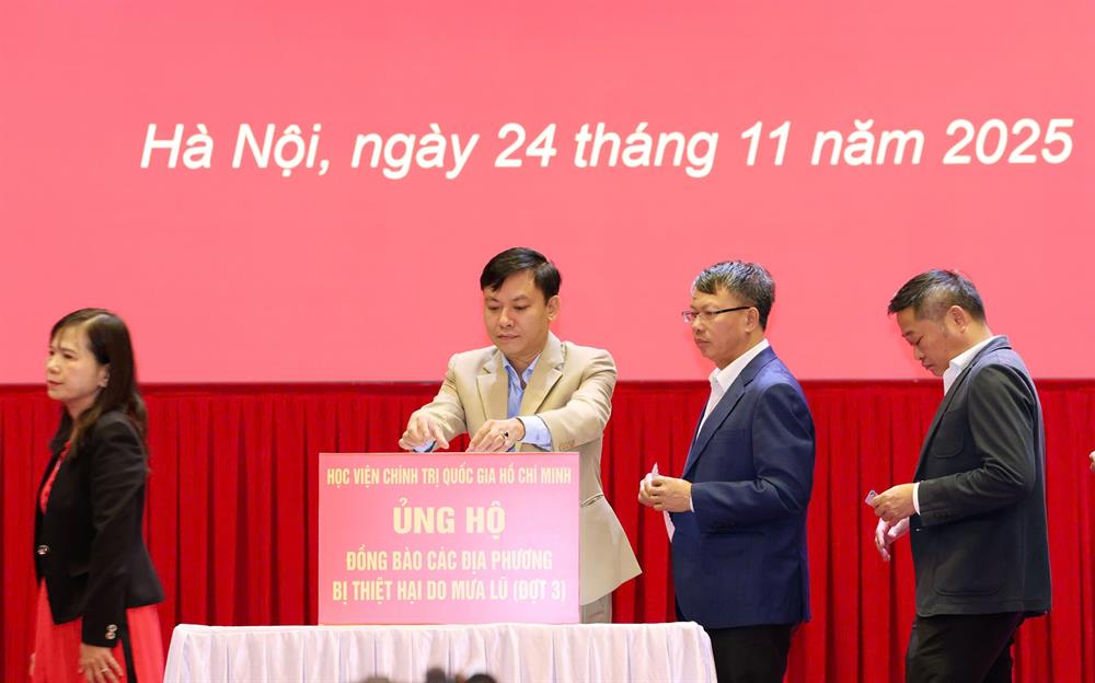 Trước tình hình đó, phát huy truyền thống đoàn kết, nghĩa tình và tinh thần sẻ chia với đồng bào vùng lũ, Học viện Chính trị quốc gia Hồ Chí Minh tổ chức Lễ phát động ủng hộ nhằm kịp thời chung tay hỗ trợ và tiếp thêm nguồn lực để các địa phương sớm khắc phục hậu quả thiên tai, ổn định đời sống.