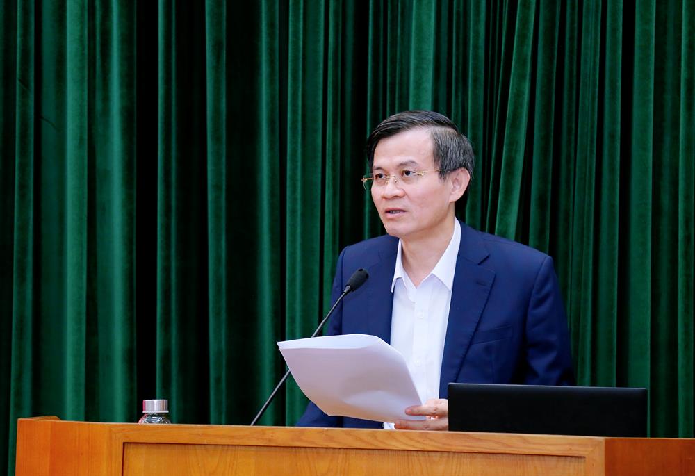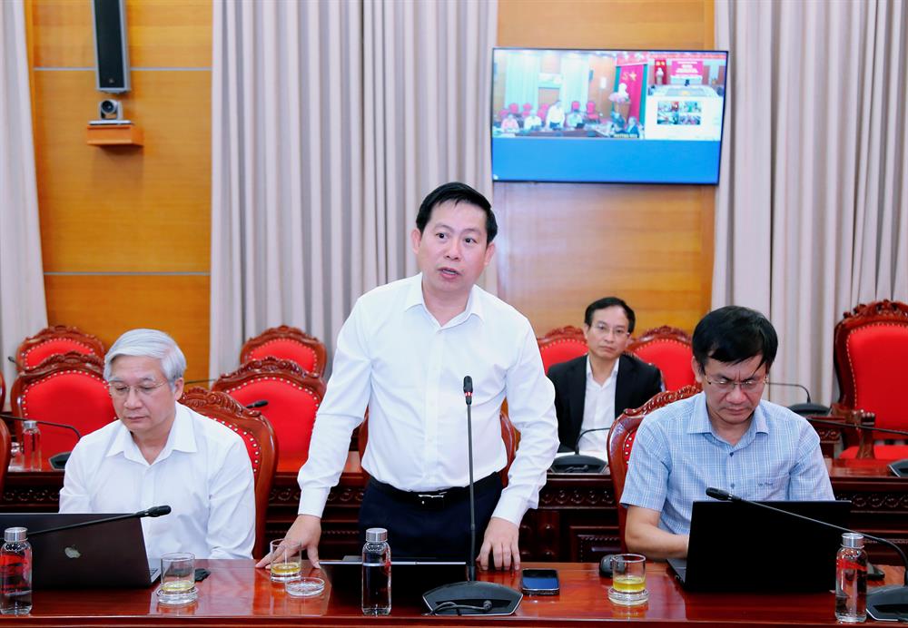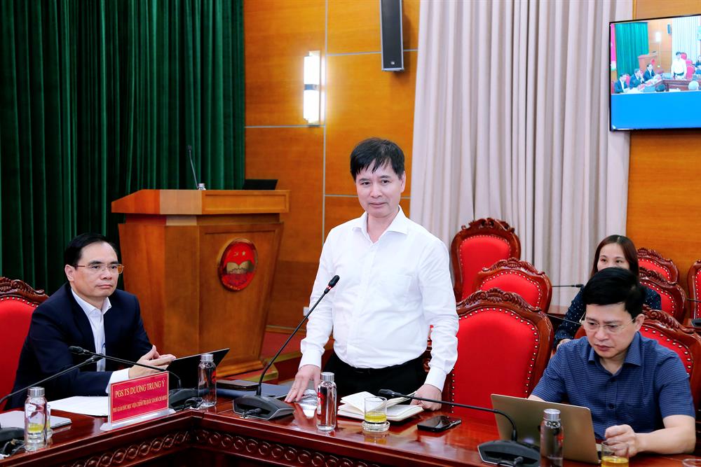 PGS,TS Nguyễn Mạnh Hùng, Phó Giám đốc Học viện Chính trị quốc gia Hồ Chí Minh, Phó Chủ tịch Hội đồng Lý luận Trung ương phát biểu tại Hội nghị