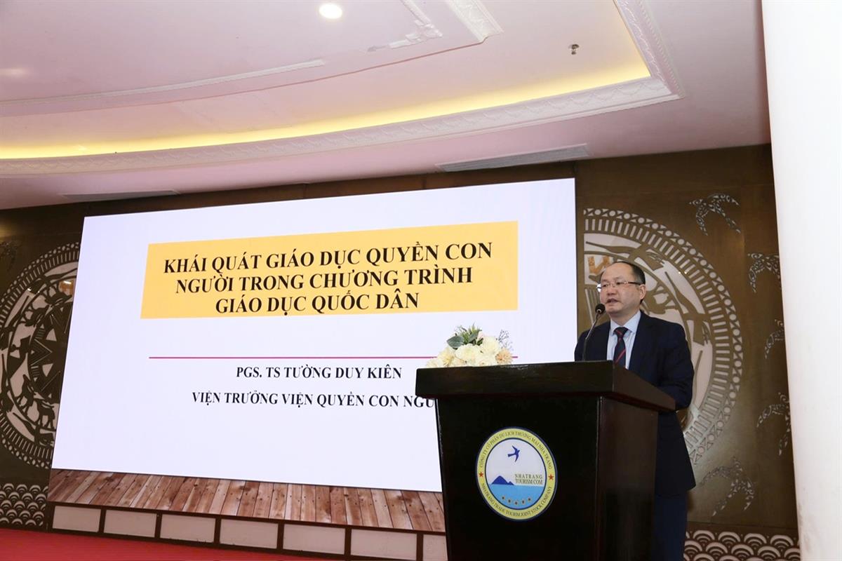 PGS,TS Tường Duy Kiên, Viện trưởng Viện Quyền con người thuộc Học viện Chính trị quốc gia Hồ Chí Minh phát biểu tại Hội thảo