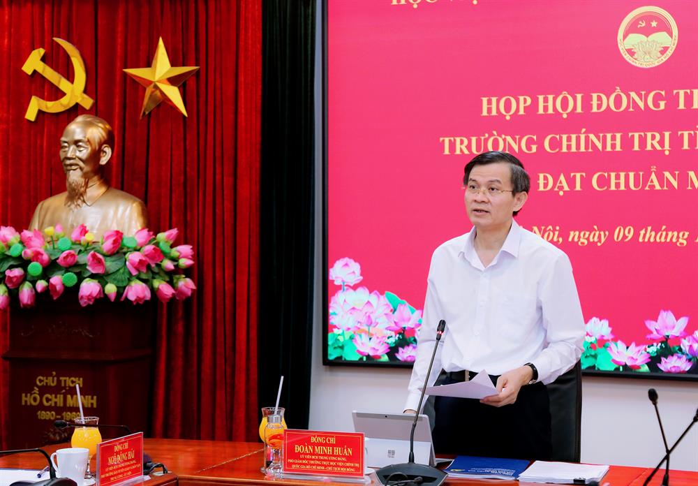 Ghi nhận và đánh giá cao sự chỉ đạo trực tiếp quyết liệt của lãnh đạo tỉnh Điện Biên, sự cố gắng, nỗ lực triển khai đồng bộ, toàn diện, có chất lượng các mặt hoạt động của tập thể lãnh đạo, cán bộ Trường Chính trị tỉnh Điện Biên, PGS,TS Đoàn Minh Huấn, Uỷ viên Trung ương Đảng, Phó Giám đốc thường trực Học viện Chính trị quốc gia Hồ Chí Minh, Chủ tịch Hội đồng thẩm định tin tưởng trong thời gian tới Trường Chính trị tỉnh Điện Biên sẽ tiếp tục giữ vững các tiêu chí đạt và vượt chuẩn mức 1, từng bước nâng cao chất lượng các mặt công tác và sớm đạt chuẩn mức 2.