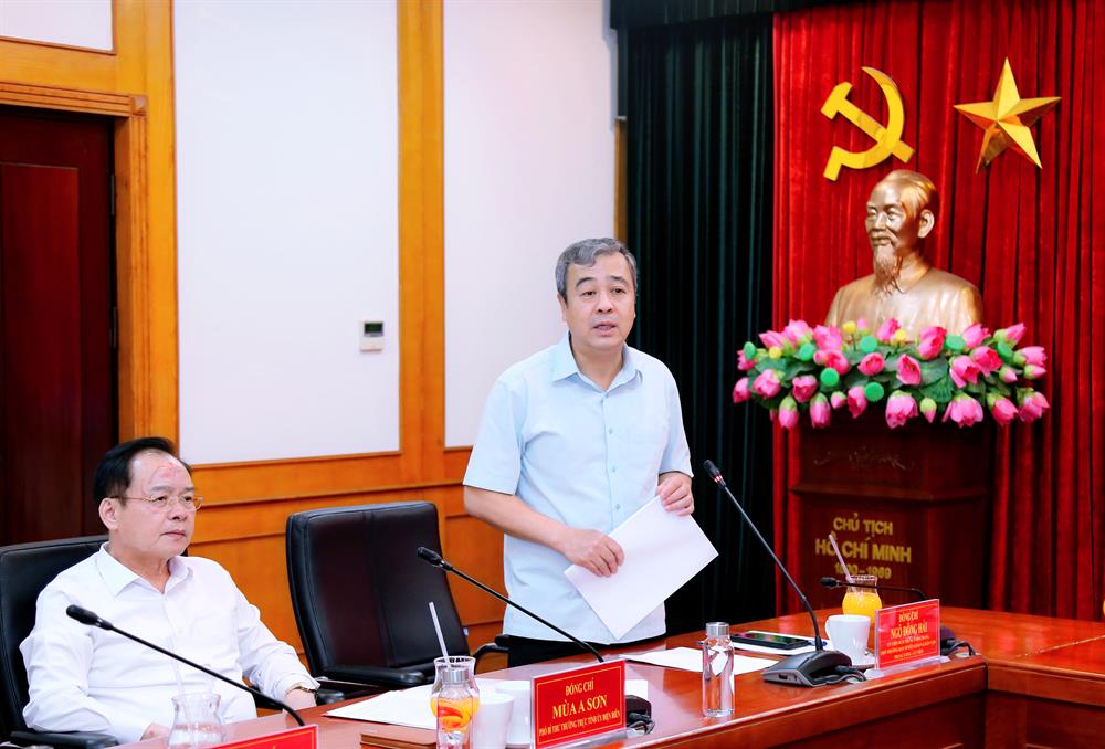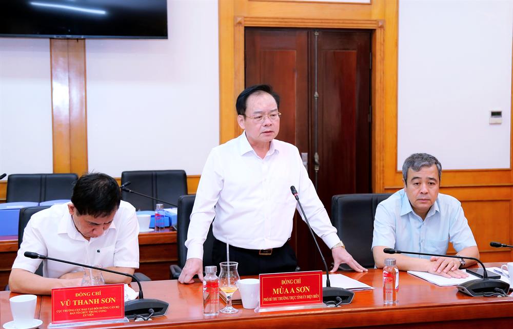 Thay mặt Ban Thường vụ Tỉnh uỷ Điện Biên, phát biểu tại cuộc họp, đồng chí Mù A Sơn, Phó Bí thư thường trực Tỉnh uỷ trân trọng cảm ơn Học viện Chính trị quốc gia Hồ Chí Minh và các bộ, ban, ngành ở Trung ương trong suốt thời gian qua đã quan tâm, chỉ đạo, hướng dẫn tỉnh Điện Biên nói chung và Trường Chính trị tỉnh Điện Biên nói riêng trong xây dựng và hoàn thiện các tiêu chí, chỉ tiêu để Trường Chính trị tỉnh Điện Biên đạt chuẩn mức 1.