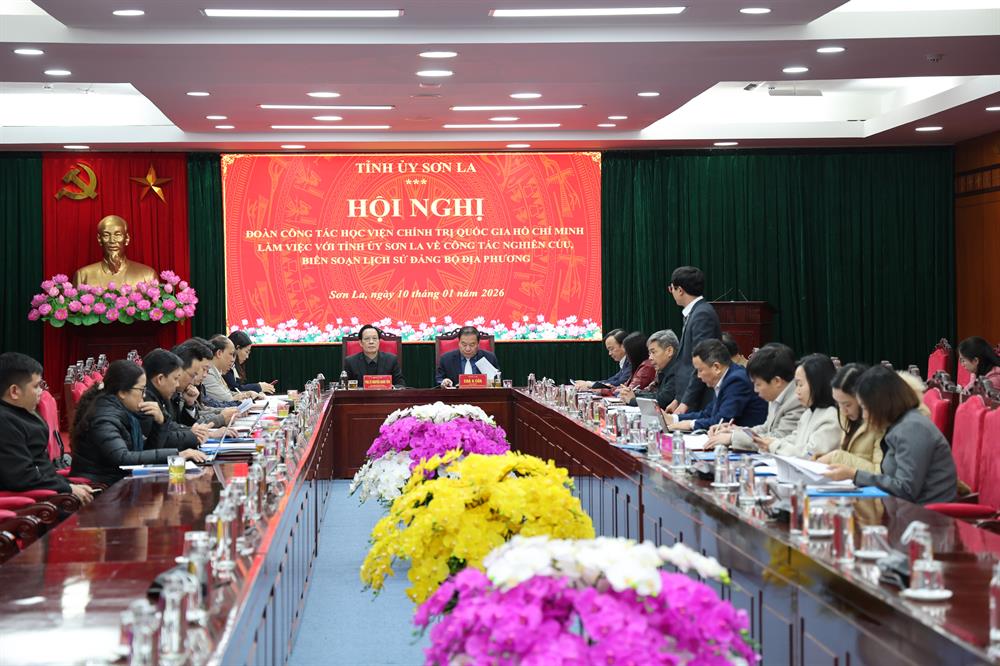 Tại buổi làm việc với Tỉnh ủy Sơn La, tiếp và chủ trì làm việc với Đoàn có đồng chí Chá A Của, Phó Bí thư Tỉnh ủy, Chủ tịch Ủy ban MTTQ Việt Nam tỉnh. Tham gia buổi làm việc có các đồng chí: Hà Trung Chiến, Ủy viên Ban Thường vụ Tỉnh ủy, Phó Chủ tịch Thường trực UBND tỉnh; Đinh Thị Bích Thảo, Ủy viên Ban Thường vụ Tỉnh ủy, Trưởng Ban Tuyên giáo và Dân vận Tỉnh ủy; đại diện lãnh đạo các sở, ngành của tỉnh. Tại buổi làm việc, Đoàn công tác đã được nghe “Báo cáo tóm tắt tình hình kinh tế - xã hội của tỉnh Sơn La”; “Báo cáo tóm tắt kết quả thực hiện Chỉ thị số 20-CT/TW ngày 18/1/2018 của Ban Bí thư Trung ương “về tiếp tục tăng cường, nâng cao chất lượng nghiên cứu, biên soạn, tuyên truyền, giáo dục Lịch sử Đảng” trên địa bàn tỉnh Sơn La”; “Báo cáo tóm tắt công tác quản lý, phát huy các giá trình văn hóa tốt đẹp của các dân tộc trên địa bàn tỉnh”; “Báo cáo tóm tắt về chuyển đổi số trong nông nghiệp và nông thôn trên địa bàn tỉnh”.