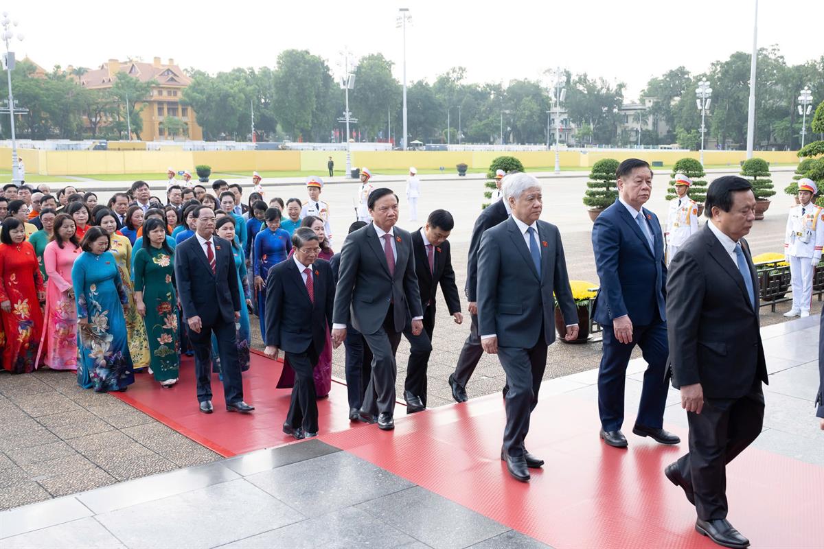 Trước giờ khai mạc, lãnh đạo Đảng, Nhà nước cùng các đại biểu Quốc hội vào Lăng viếng Chủ tịch Hồ Chí Minh