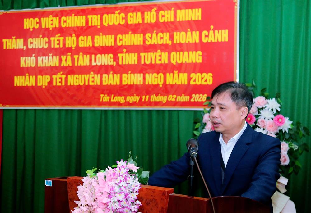 Ngày 11/02/2026, PGS,TS Hoàng Phúc Lâm, Phó Giám đốc Học viện Chính trị quốc gia Hồ Chí Minh cùng Đoàn công tác đã đến thăm, chúc Tết Đảng bộ, Chính quyền và nhân dân bà con xã Tân Long, tỉnh Tuyên Quang. Tham gia Đoàn công tác có đại diện lãnh đạo các đơn vị trực thuộc Học viện Chính trị quốc gia Hồ Chí Minh.