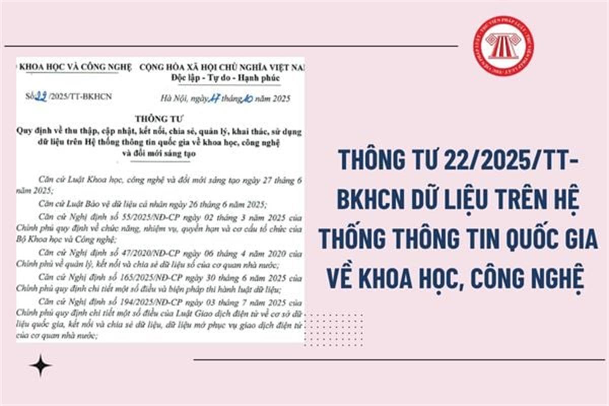 Toàn văn Thông tư 22/2025/TT-BKHCN quy định về thu thập, cập nhật, kết nối, chia sẻ, quản lý, khai thác, sử dụng dữ liệu trên Hệ thống thông tin quốc gia về khoa học, công nghệ và đổi mới sáng tạo